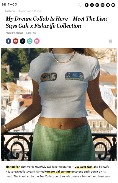 “Tinned fish summer is here! My two favorite brands – Lisa Says Gah! and Fishwife– just revived last year’s famed tomato girl summer aesthetic and spun it on its head.”